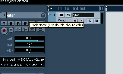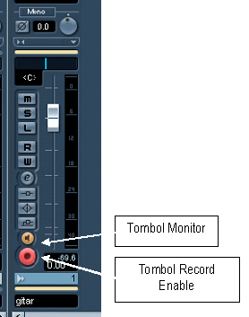 - Untuk memulai merekam, kita tinggal mengaktifkan tombol Monitor dan Record enable, yang berfungsi untuk menulis sinyal audio yang terbaca di dalam hard disk, dan untuk memonitor suara instrument yang kita mainkan.