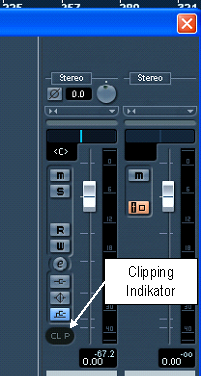 - Kita mainkan sumber audio yang ingin kita rekam, sambil kita cek level meter pada inpit bus. Sebaiknya sinyal mempunyai tingkat kekerasan suara tidak lebih dari 0dB, yang dapat kita pantau dari Clipping Indikator. Bila clipping indicator tersebut menyala, maka sinyal yang kita rekam terlalu tinggi levelnya, maka harus kita kurangi.