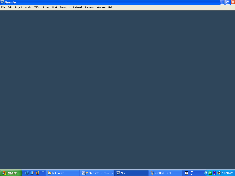 Sebelum melakukan proses recording, di komputer kita harus sudah terinstall program nuendo. Setelah kita install program nuendo tersebut, marilah kita buka program tersebut, baik melalui shortcut atau dari menu start dan pilihlah program nuendo.