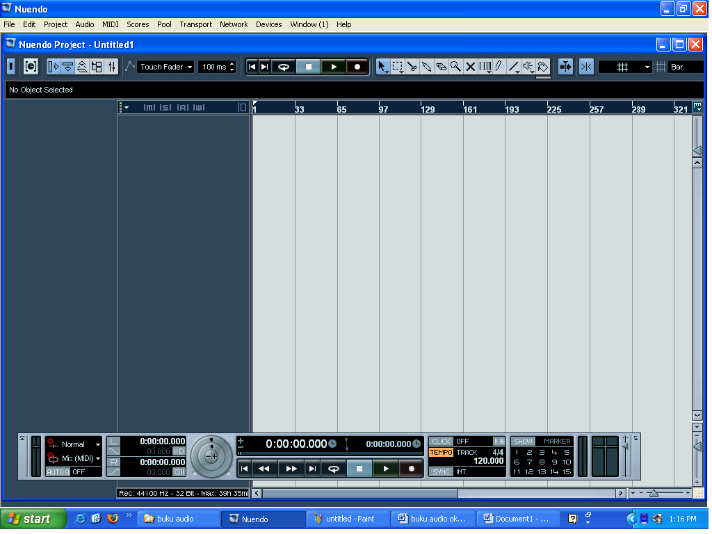 Sekarang kita akan mulai melakukan poses rekaman atau recording. Seperti telah disinggung dimuka, bahwa di artikel ini kita khususkan memakai software nuendo. Disini kita akan memakai nuendo versi 3.