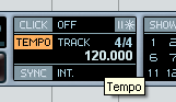 Untuk mengubah tempo lagu klik tulisan TEMPO TRACK, kemudian klik nilai tempo dan ganti dengan keinginan kita. Untuk mengubah birama, klik nilai birama, kemudian ganti dengan keinginan kita.
