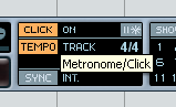 Untuk mengaktifkan bunyi metronome klik tulisan CLICK OFF. Begitu kita klik akan berubah menjadi CLICK ON. Dengan demikian metronome akan aktif bila kita memulai merekam atau memainkan lagu. Temponya sesuai dengan yang kita ketik, dan terpampang di panel tersebut.
